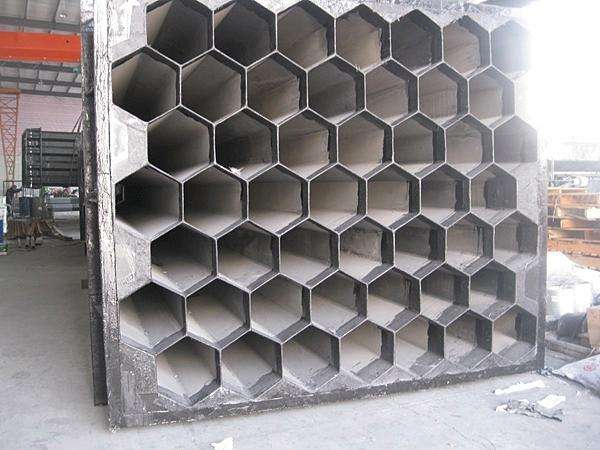 玻璃钢阳极管特点: 1、耐腐蚀性强,能耐各种稀酸、碱、盐等高腐蚀介质的腐蚀。 2、导电性能优良、除尘除雾效率高。 3、重量轻、强度高,外形尺寸确定,节省支撑平台费用,延长了设备的使用寿命。 4、结构紧凑,蜂窝型结构使每个极管的内外表面都成为沉淀表面。 5、阻燃性好,材料的氧指数可达30%,使用寿命长,一般可达20年以上。 应用范围: 玻璃钢阳极管主要应用于湿式静电除尘(雾)器、电捕焦油器等除尘除雾设备的阳极模块。