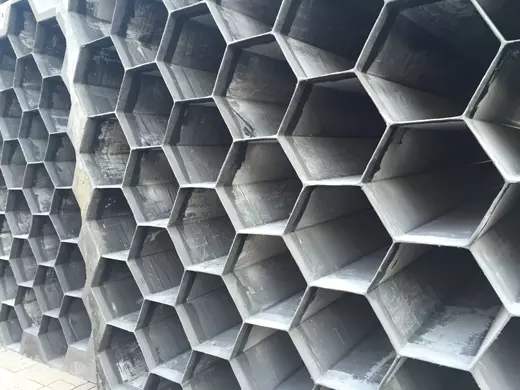 玻璃钢阳极管特点: 1、耐腐蚀性强,能耐各种稀酸、碱、盐等高腐蚀介质的腐蚀。 2、导电性能优良、除尘除雾效率高。 3、重量轻、强度高,外形尺寸确定,节省支撑平台费用,延长了设备的使用寿命。 4、结构紧凑,蜂窝型结构使每个极管的内外表面都成为沉淀表面。 5、阻燃性好,材料的氧指数可达30%,使用寿命长,一般可达20年以上。 应用范围: 玻璃钢阳极管主要应用于湿式静电除尘(雾)器、电捕焦油器等除尘除雾设备的阳极模块。